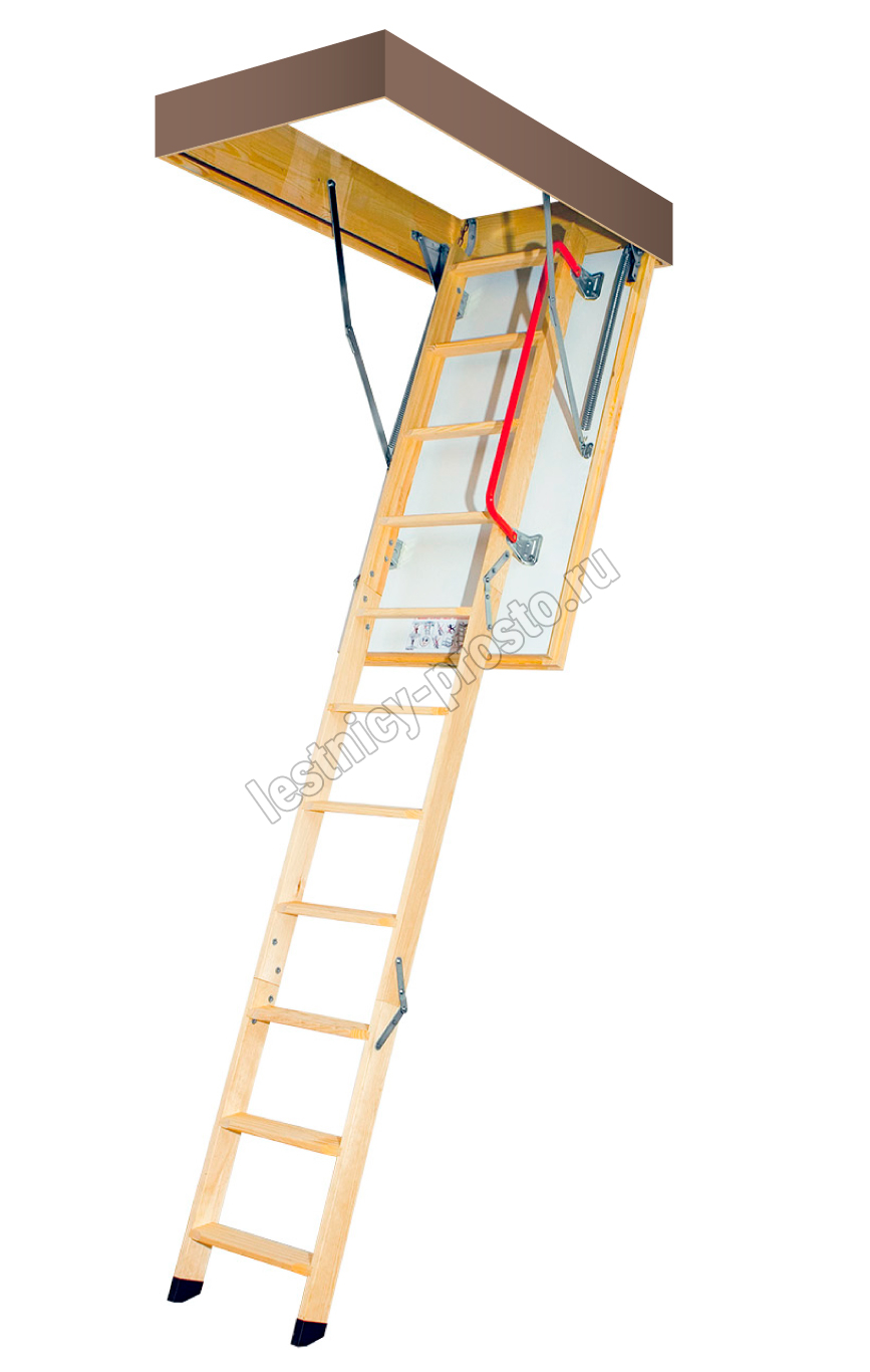 Чердачная лестница LTK Thermo изготовлена из сосны высшего качества и укомплектована утепленной крышкой люка толщиной 66 мм с повышенными теплоизоляционными свойствами. Данную модель лестницы можно использовать даже в домах, где значительна разница температур между этажами, и тем самым ограничить проникновение холода в жилые помещения. Лестница состоит из трех секций, которые компактно складываются и «хранятся в потолке». Крышка люка облицована ДВП белого цвета, что делает ее практически незаметной при установке в светлом или белом потолке. Для большего удобства и безопасности эксплуатации лестница Thermo оснащена боковым металлическим поручнем, а пластиковые наконечники предохраняют поверхность пола от повреждения и увеличивают устойчивость конструкции