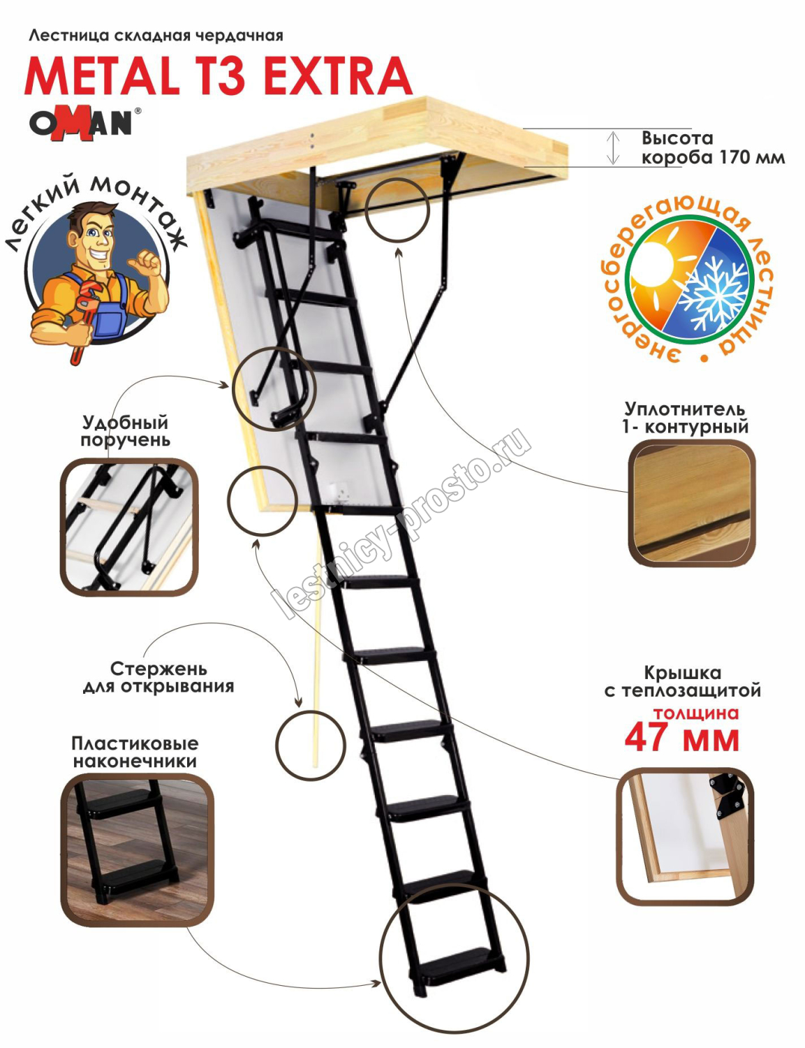 Лестница OMAN Metal T3 EXTRA 70×110 см, h-280 см