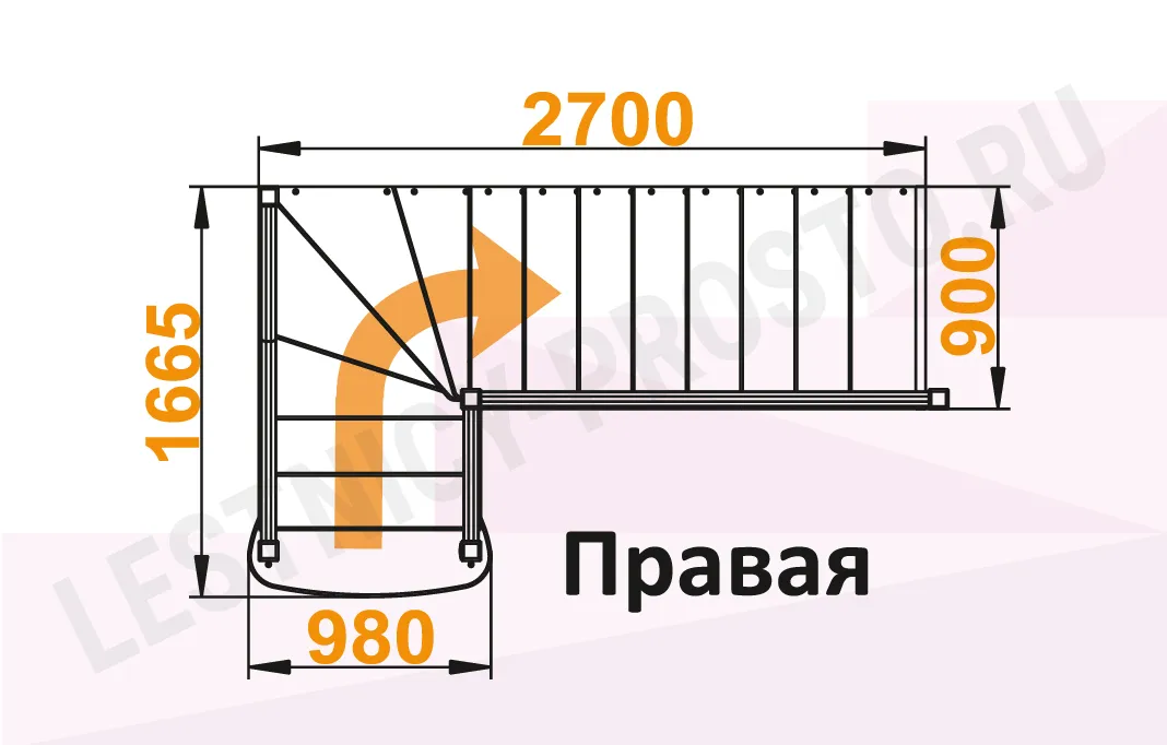 Высота лестницы 2925 - 3120 мм