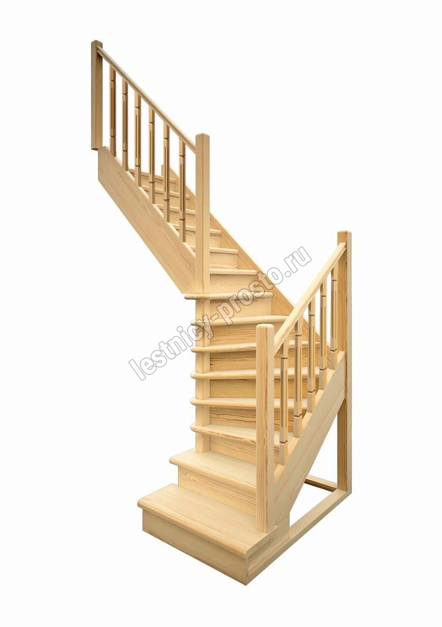 Базовый комплект включает в себя деревянные элементы лестницы, подступенки и ограждения без какого-либо покрытия. Лестница поставляется в разобранном виде, упакованная в ящик. Монтаж производится силами двух человек, в соответствии с указаниями, приведёнными в паспорте лестницы.
