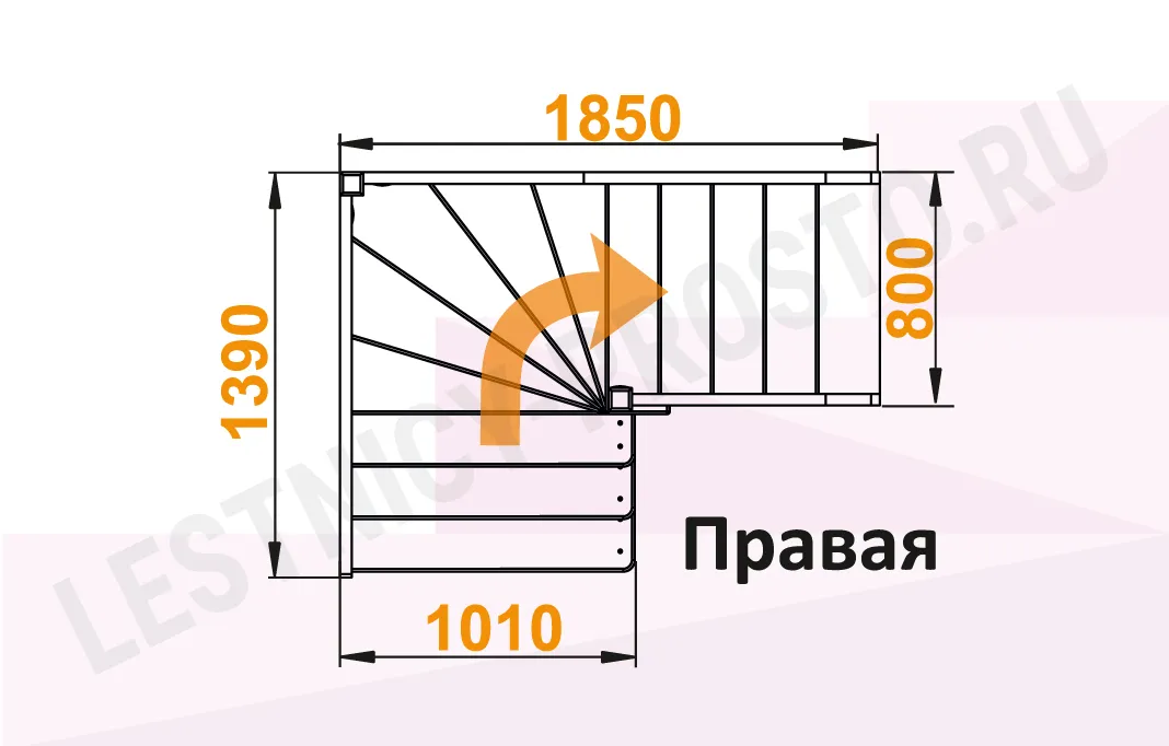 Схема лестницы ЛС-92М/3 с поворотом направо