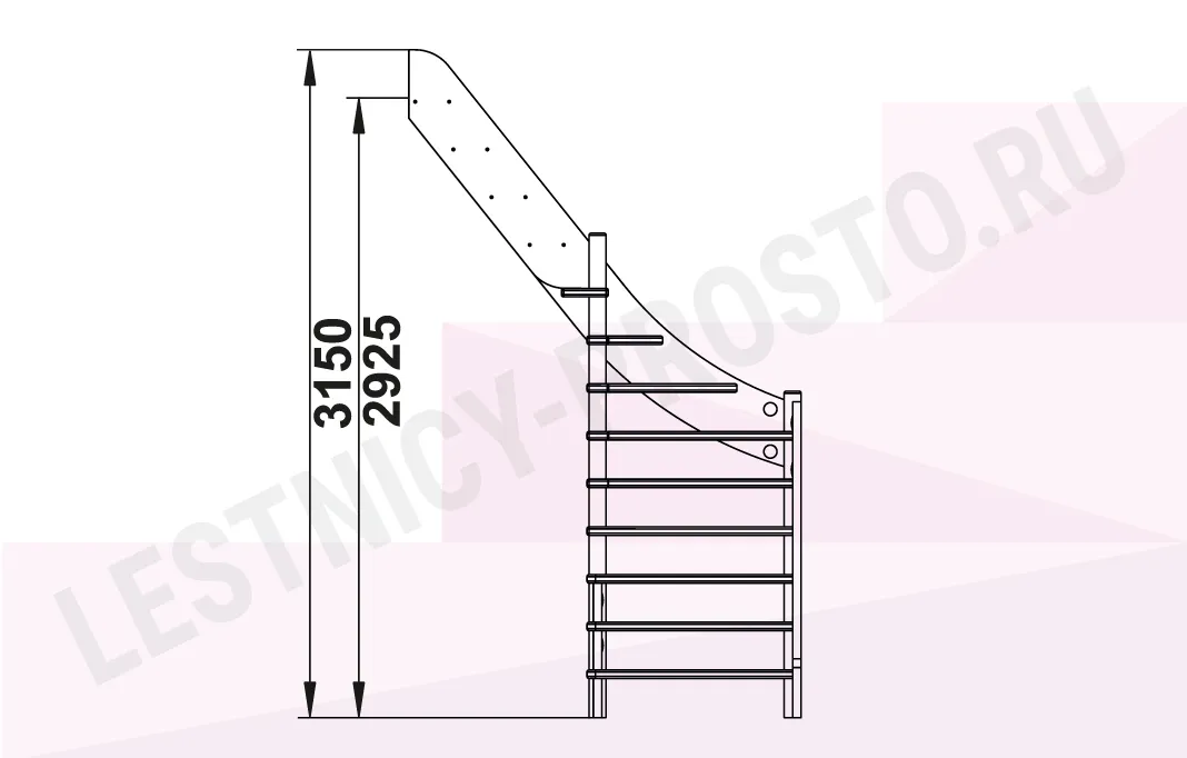 Высота лестницы 2925 - 3150 мм