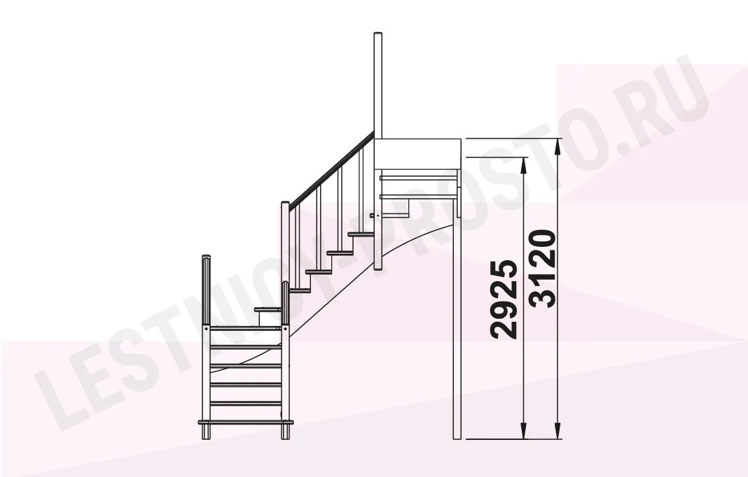Базовый комплект включает в себя деревянные элементы лестницы и ограждения без какого-либо покрытия.