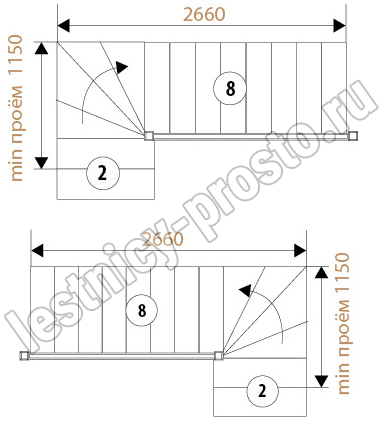 Данная лестница изготавливается под заказ в течении 4-5 недель. Возможно изготовление этой модели с другими размерами, подходящими под параметры вашего помещения. Базовое ограждение можно заменить на кованое или точеное. Ступени можно дополнить подступенями, бортиками, миниподступенями. Возможна установка лекальной (пригласительной) ступени. У лестницы комфортная высота шага, удобный широкий марш и угол подъема.