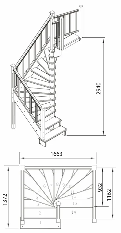 Комплектация Элементы лестницы, ограждение, крепёж, инструкция по сборке