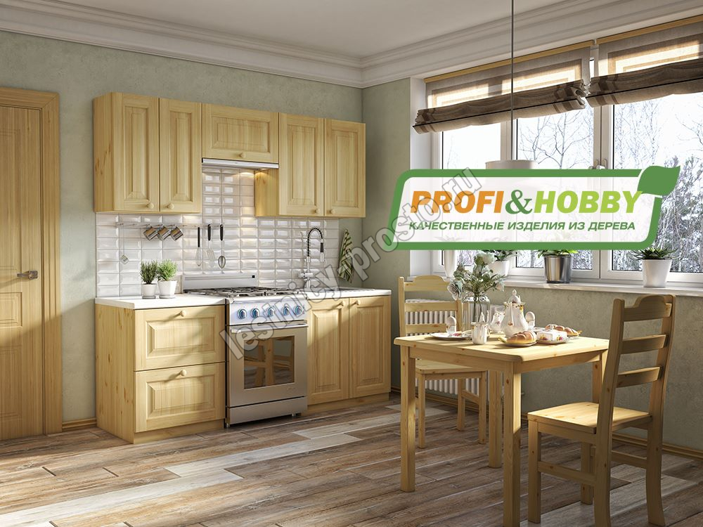 Кухня 2 х 2.14 м, массив сосны, бесцветный акриловый лак