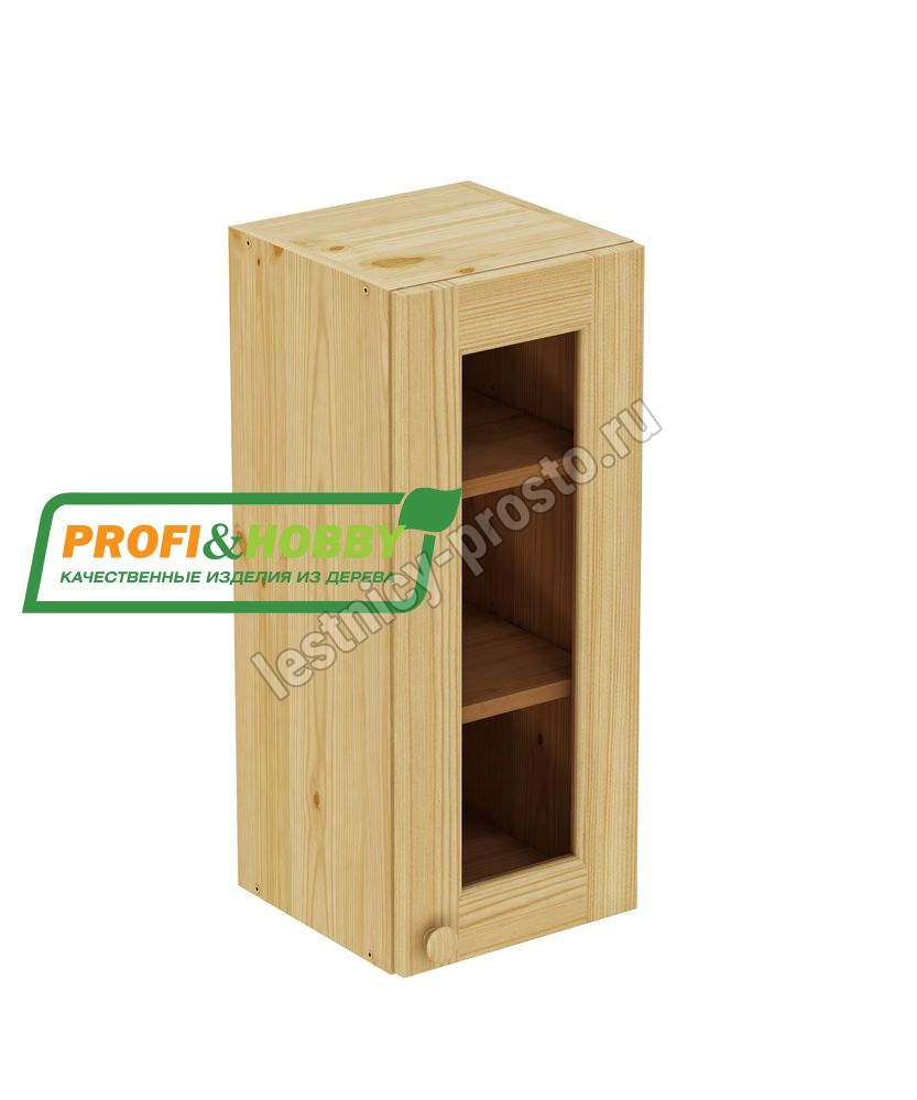 Шкаф навесной 300 х 300 х 720 под стекло, сосна, бесцветный акриловый лак