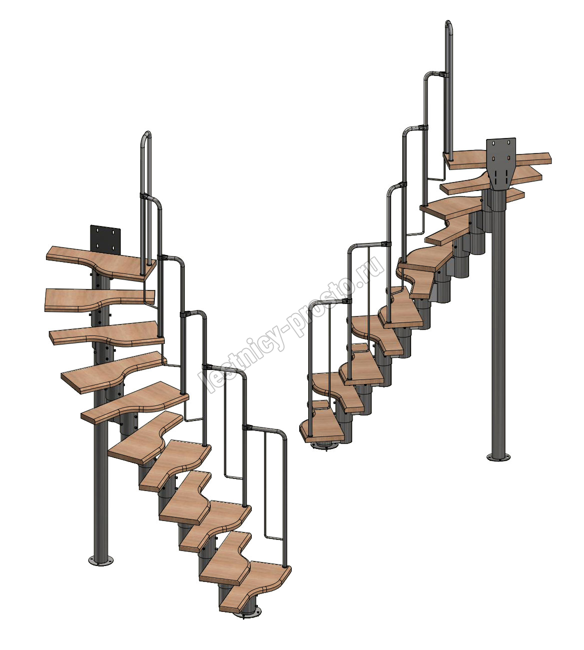 Лестница Prosto Urban Black гусиный шаг 700 мм, h198-288 см (11 ступеней), бук