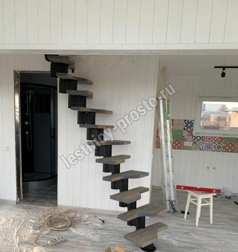 Лестница Prosto Urban Black гусиный шаг 600 мм, h216-312 см (12 ступеней), бук
