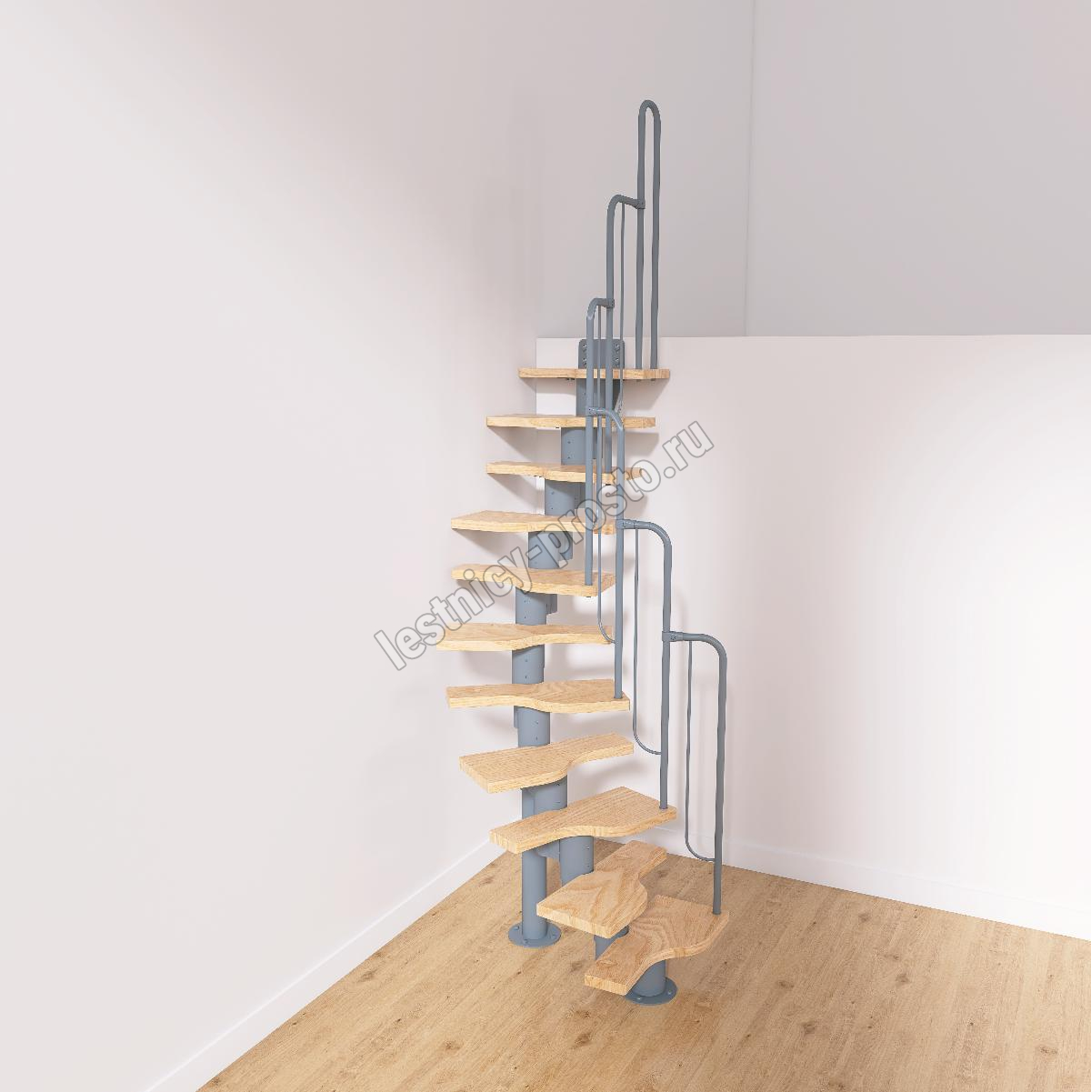 Лестница Prosto Urban Grey г-образная гусиный шаг 600 мм/ Ступени из берёзы мультиплекс
