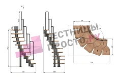 Лестница Prosto Urban White гусиный шаг 600 мм, h234-336 см (13 ступеней), бук |