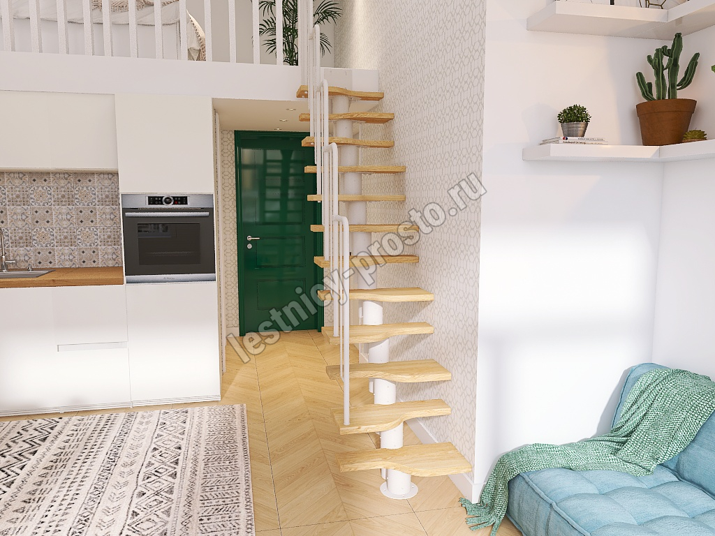 Лестница Prosto Urban White гусиный шаг 700 мм, h198-288 см (11 ступеней), дуб