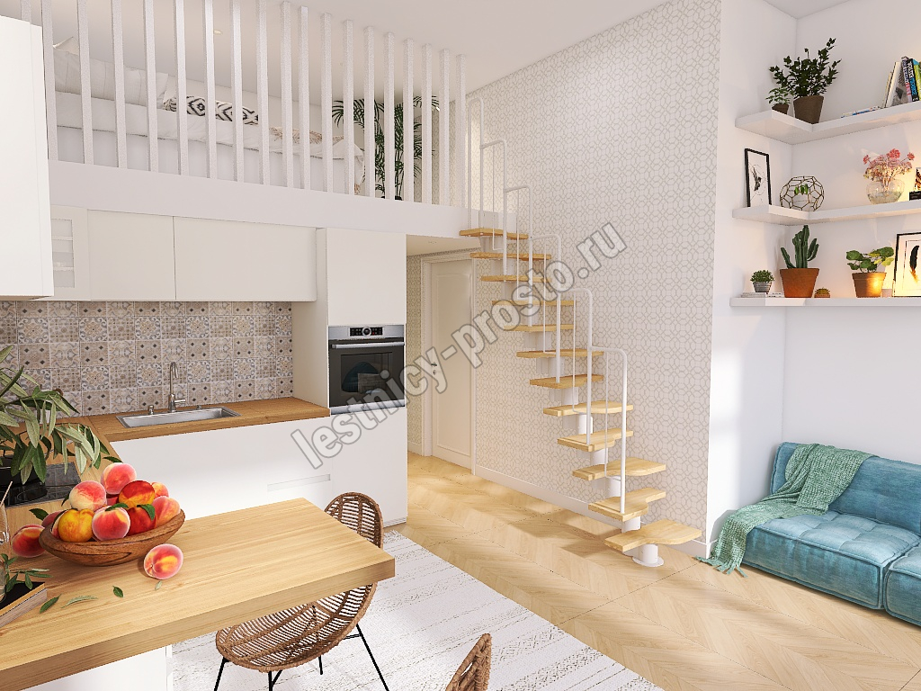 Лестница Prosto Urban White гусиный шаг 700 мм, h234-336 см (13 ступеней), дуб