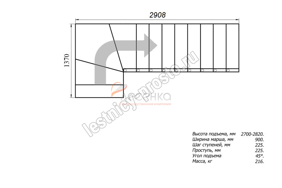 Модульная лестница Фаворит 225 2700-2820, Черный, Сосна, Крашеная