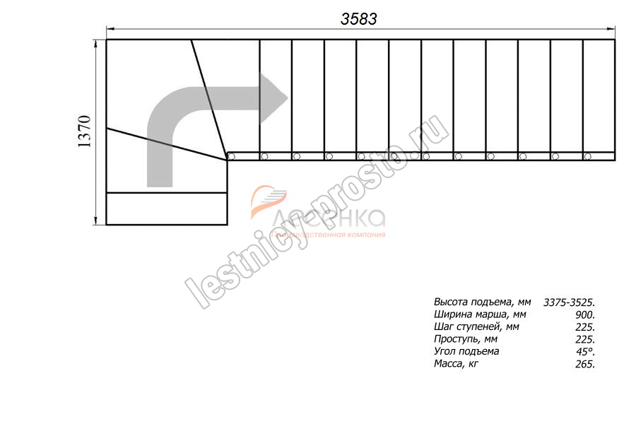 Модульная лестница Фаворит 225 3375-3525, Черный, Бук, Крашеная