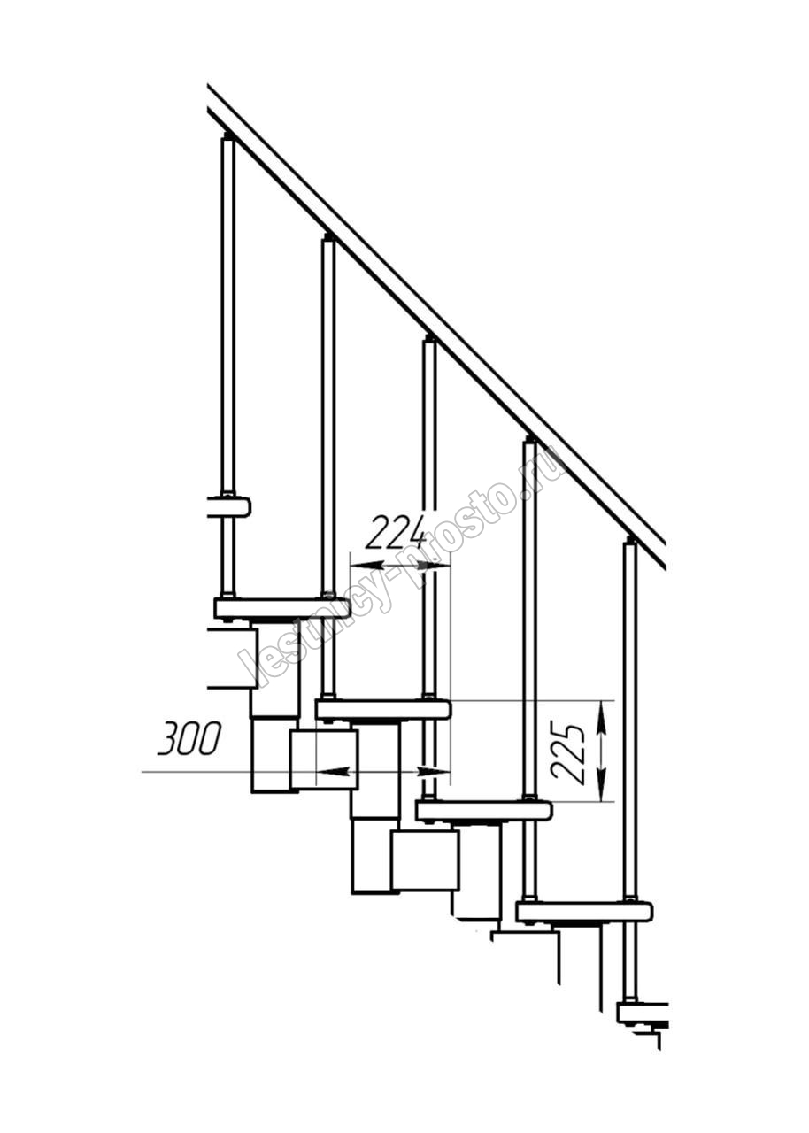 Модульная лестница Спринт 225 2475-2585, Серый, Бук, Нержавеющая сталь