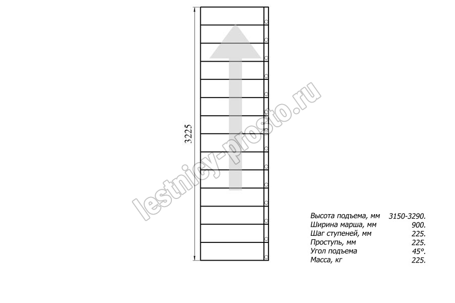 Модульная лестница Стандарт 3150-3290, Серый, Лиственница, Нержавеющая сталь
