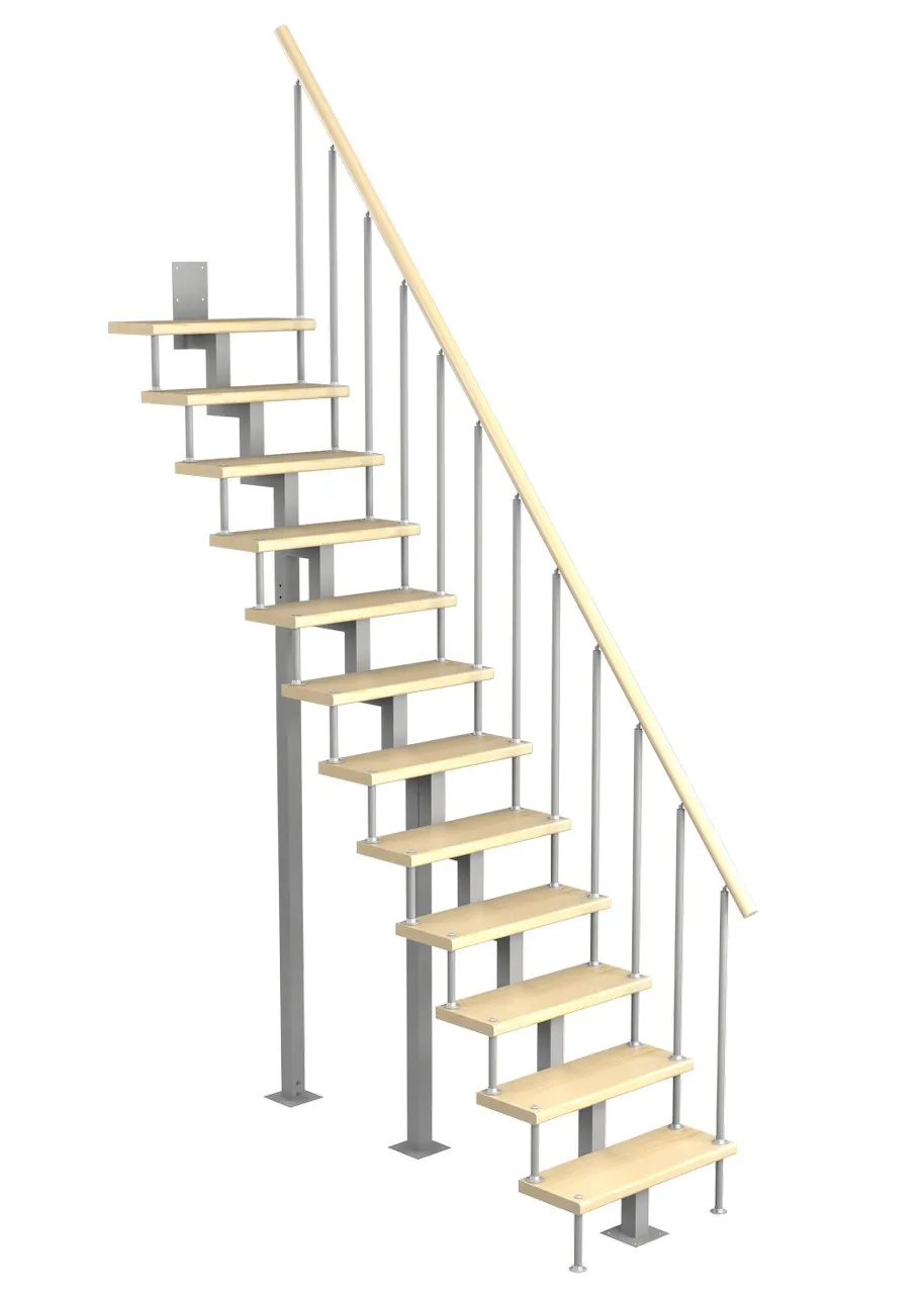 Модульная малогабаритная лестница Эксклюзив 2025-2250, Серый, Сосна, Нержавеющая сталь