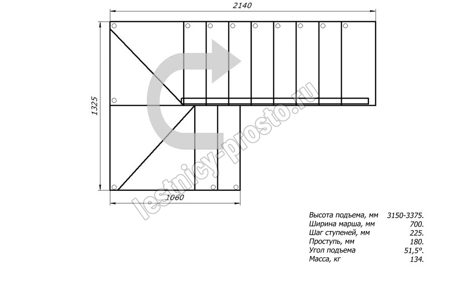 Модульная малогабаритная лестница Эксклюзив 3150-3375, Серый, Сосна, Крашеная, Без Ступений