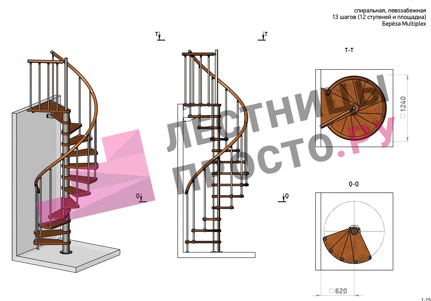 Решение об ориентации поворота лестницы принимается при сборке (комплект собирается и в правозабежную, и в левозабежную лестницу)