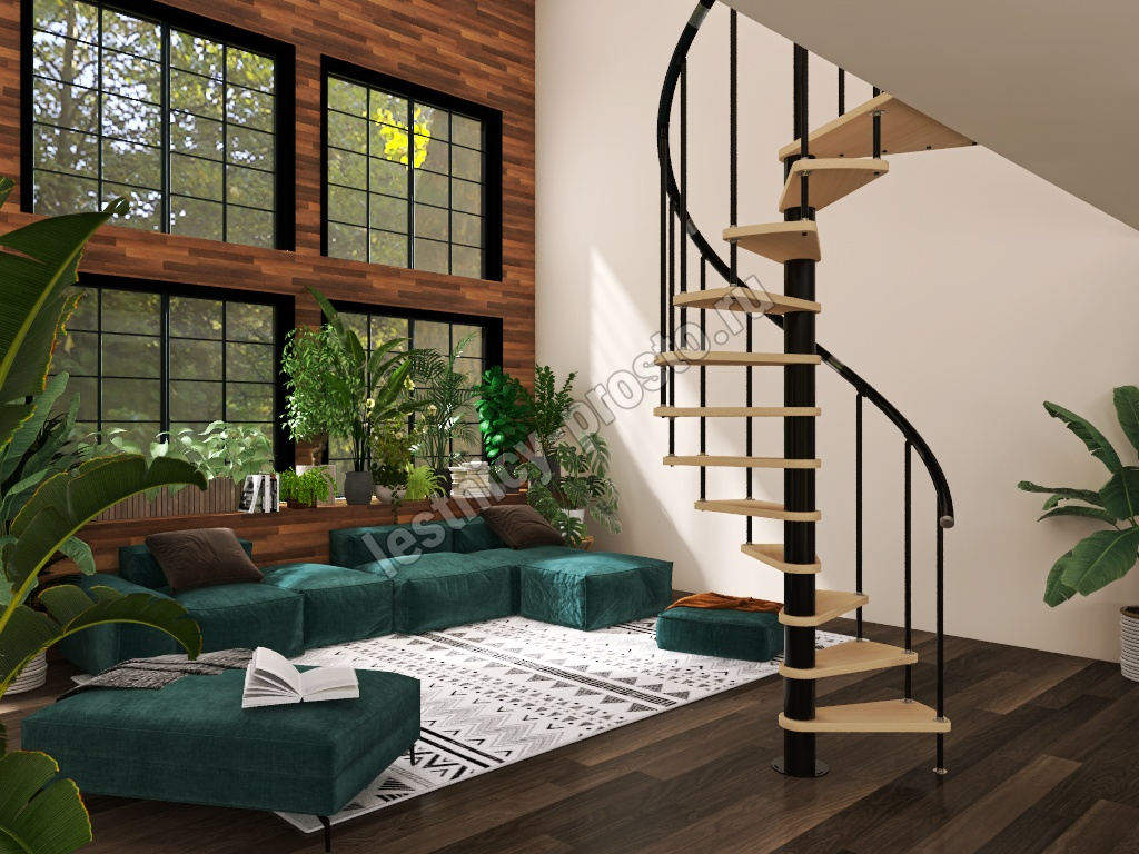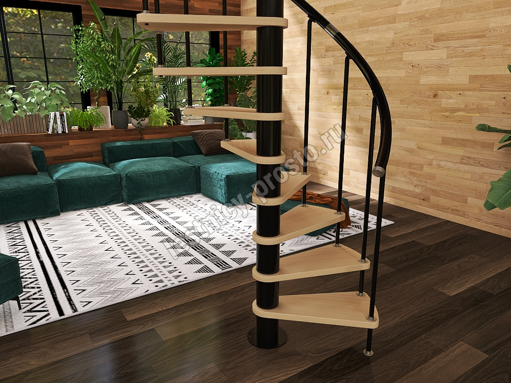 Экономит пространство. Высота ступеней регулируется с шагом 3 мм. в пределах 217-247 мм., благодаря чему, лестница прекрасно подгоняется под необходимую высоту.