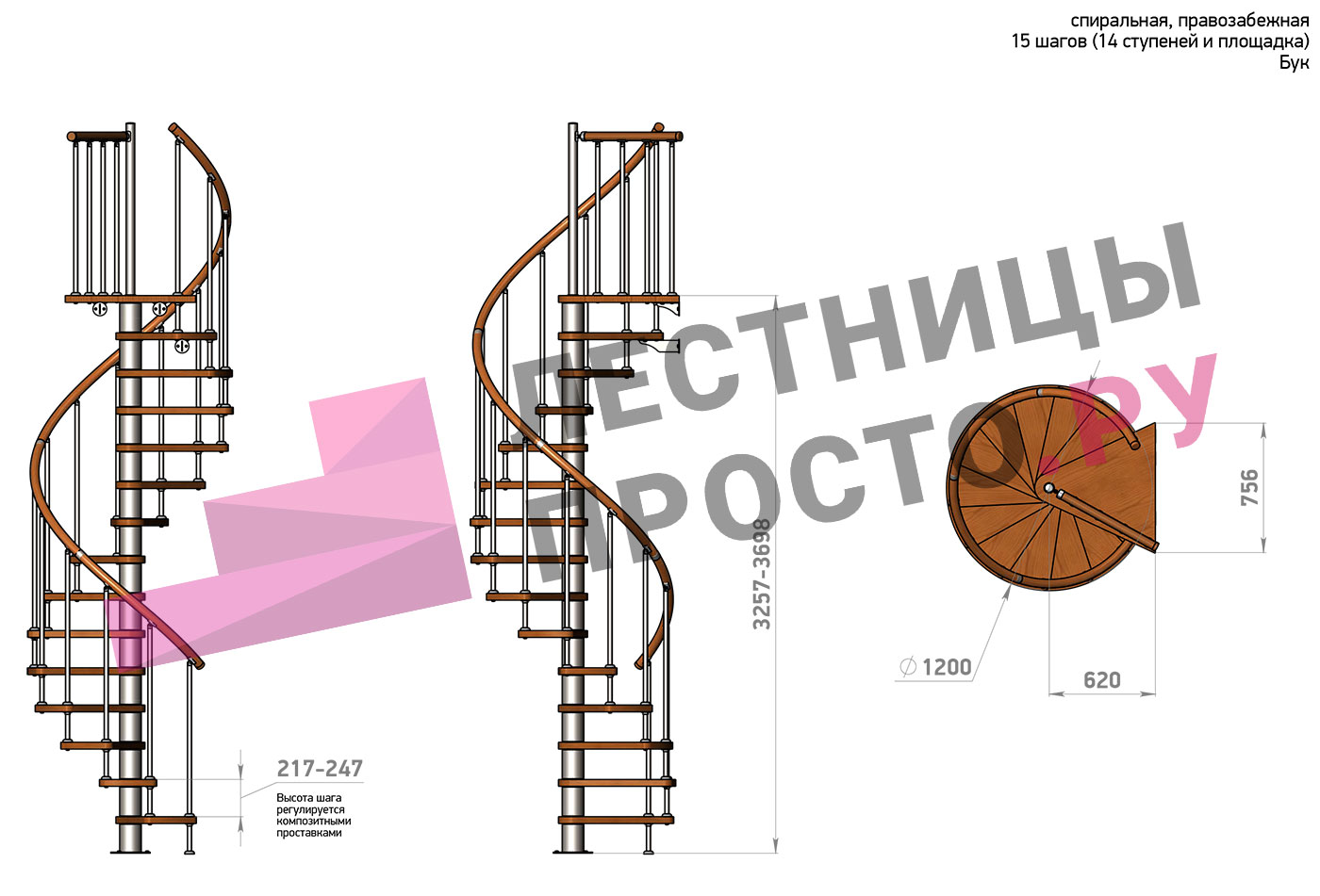 Винтовая лестница Prosto Spiral White D120см, h325.7-369.8 см, бук