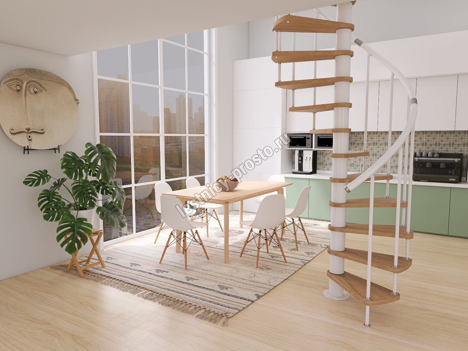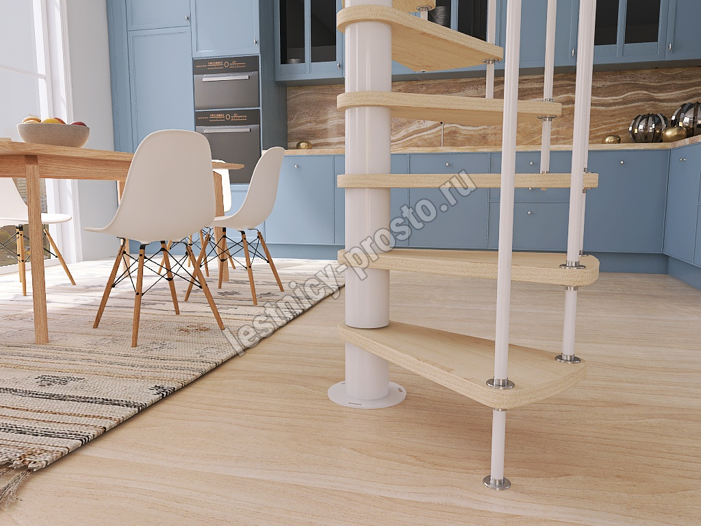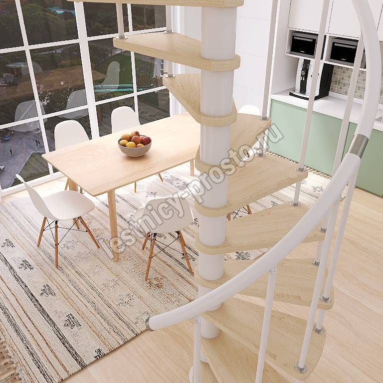 Винтовая лестница Prosto Spiral White D140см, h325.7-369.8 см, бук