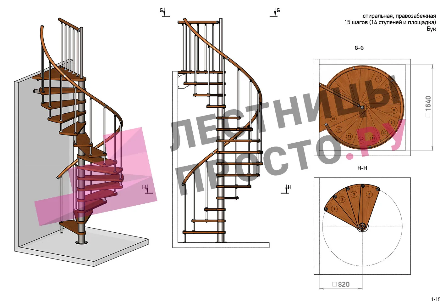 Высота лестницы 3257 - 3610 (14 ступеней) мм