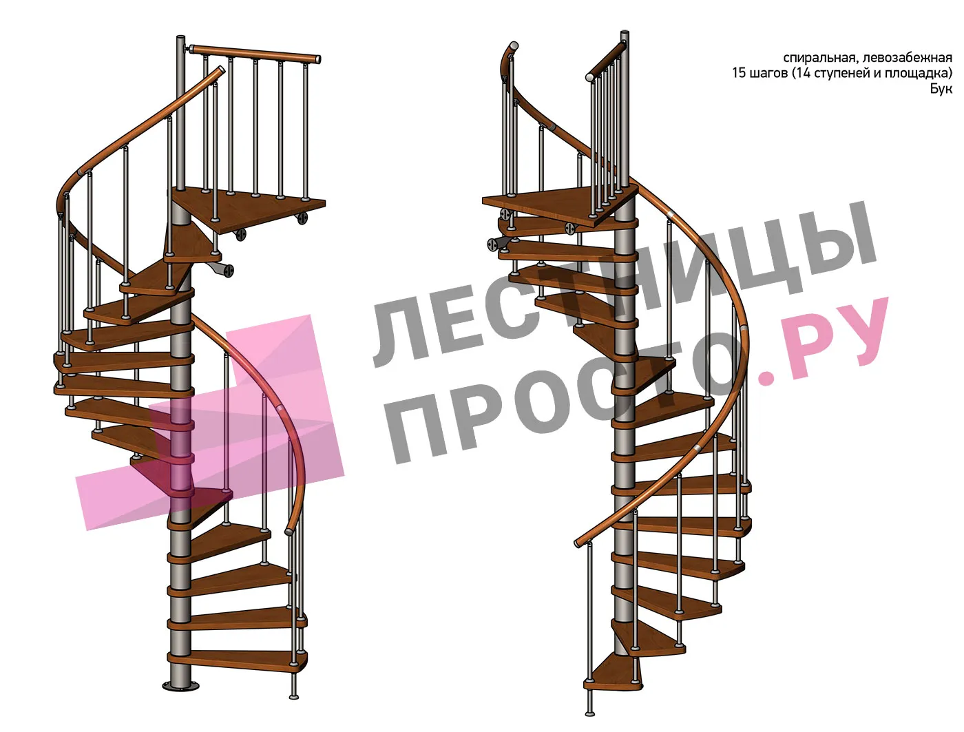 Винтовая лестница Prosto Spiral White D160см, h325.7-369.8 см, бук