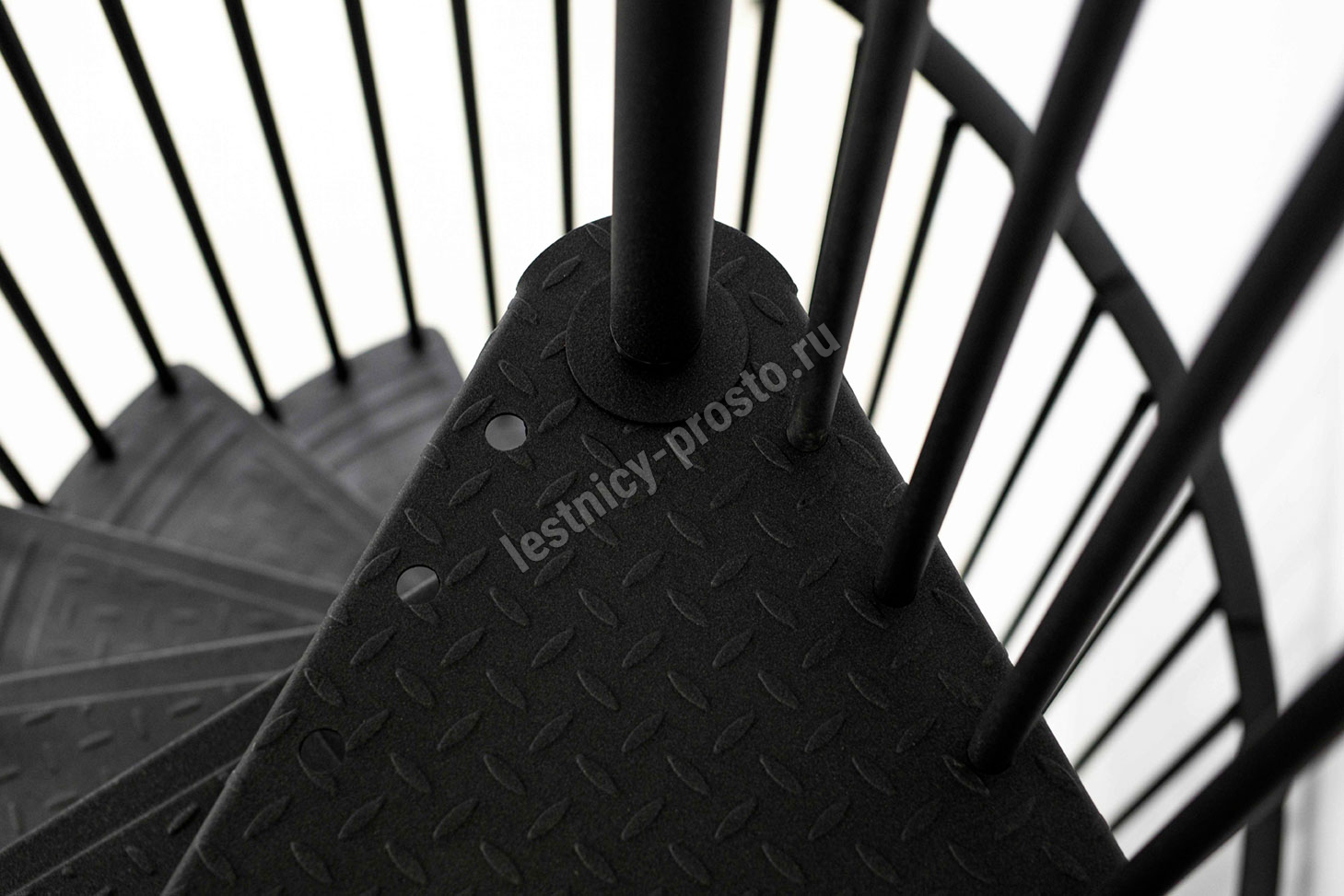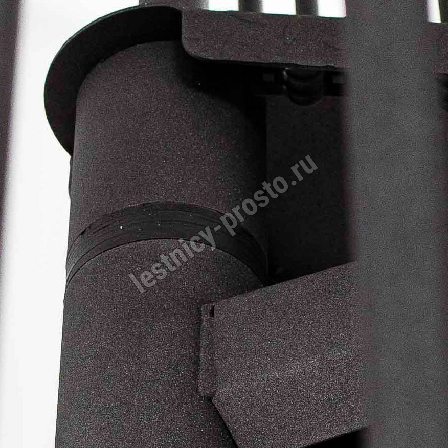 По запросу возможно конфигурирование набора до максимальной высоты 346 см. Все металлические элементы покрыты порошковой краской высочайшего качества графитового цвета, устойчивого к царапинам и механическим повреждениям. Профилированные нескользящие ступени из листового металла в клетку, снабженные небольшим подступенком для большей безопасности. Алюминиевые поручни с высококачественным порошковым покрытием. Напольные перила по запросу, прямые или круглые.