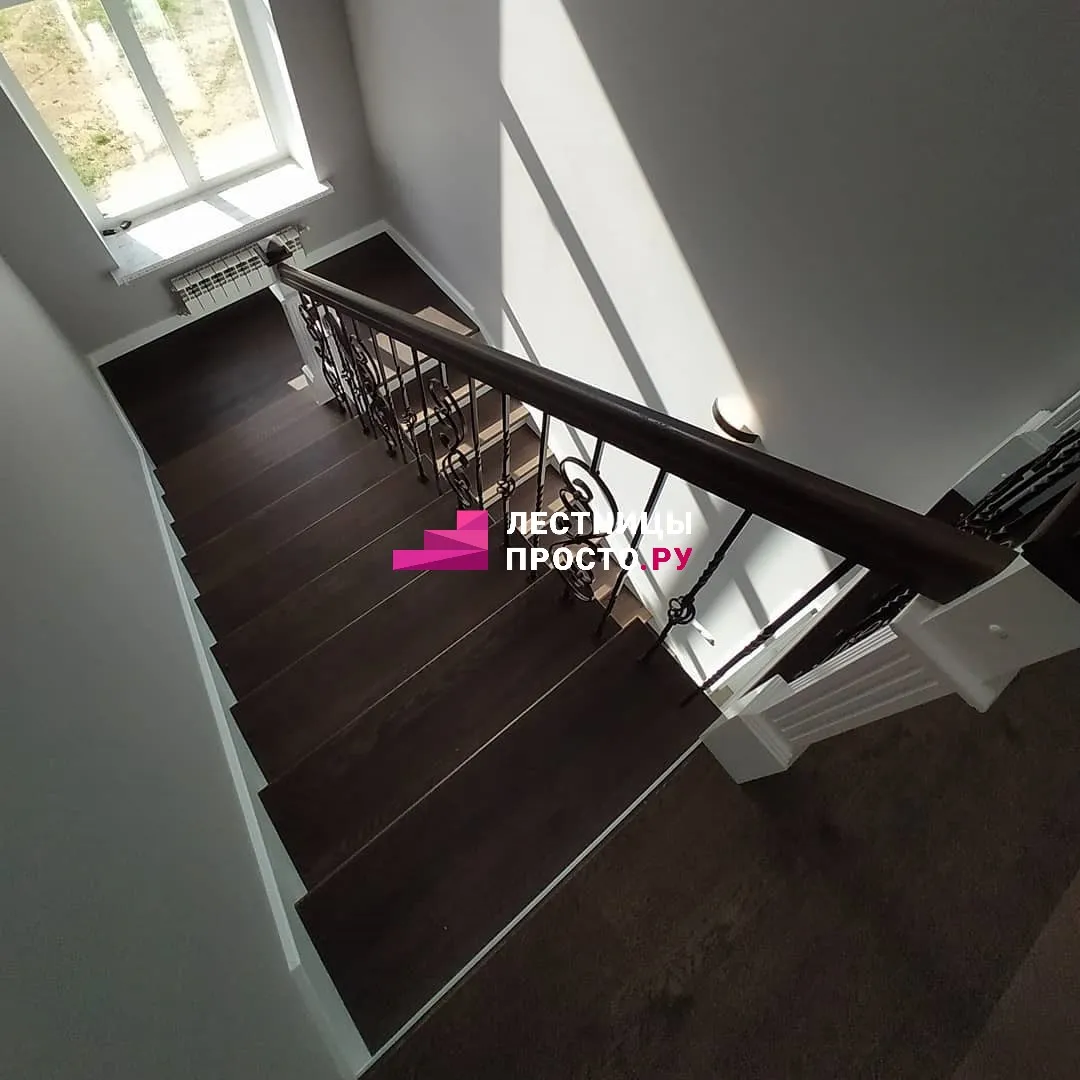 Отделка двухмаршевой бетонной лестницы деревом LP-1-44
