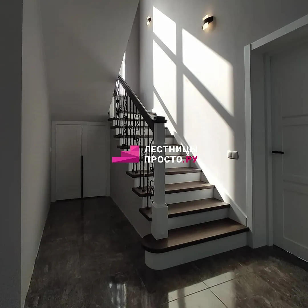 Подступенники, фальш-косоуры и сапожки (пристенной плинтус) выполнены из МДФ.